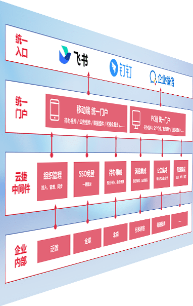 对协作平台提供支持服务,,,,支持企业应用与协作平台对接,,,,包含组织同步、、、、消息集成、、、待办集成等。。。支持目前主流的协作平台:钉钉、、、、企微和飞书。。。。